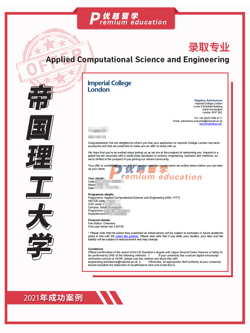 2021offer:恭喜蔡同學獲得帝國理工大學應用計算科學與工程碩士通知書