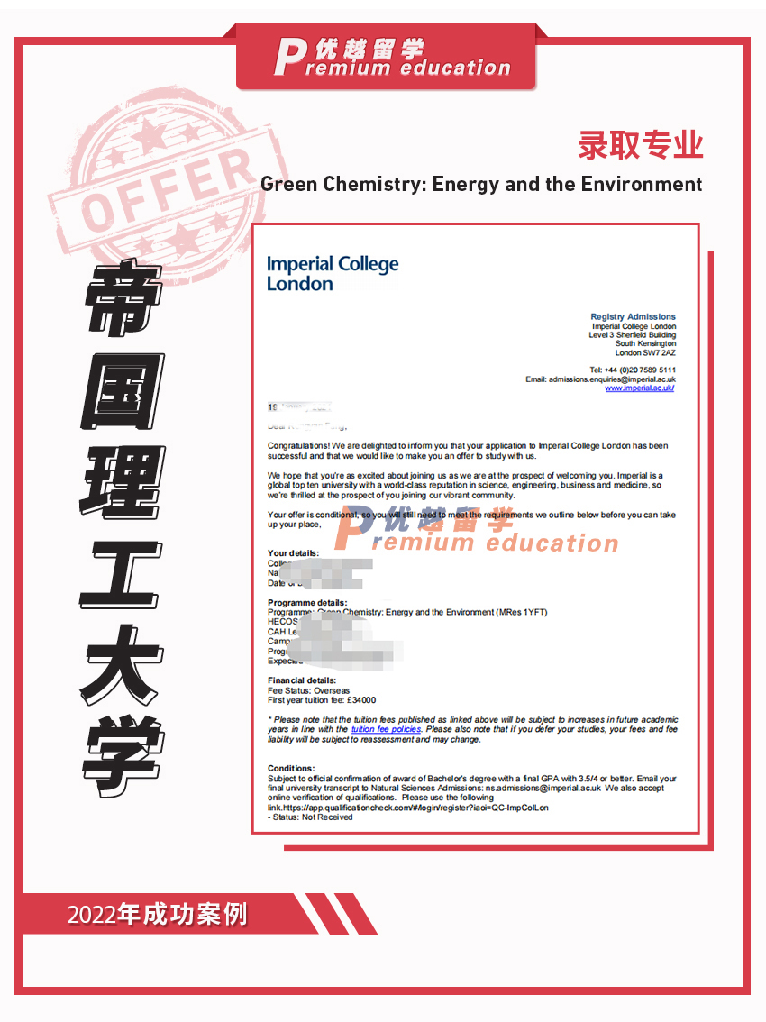 2022offer:恭喜方同學獲得帝國理工大學綠色化學:能源與環境碩士通知書
