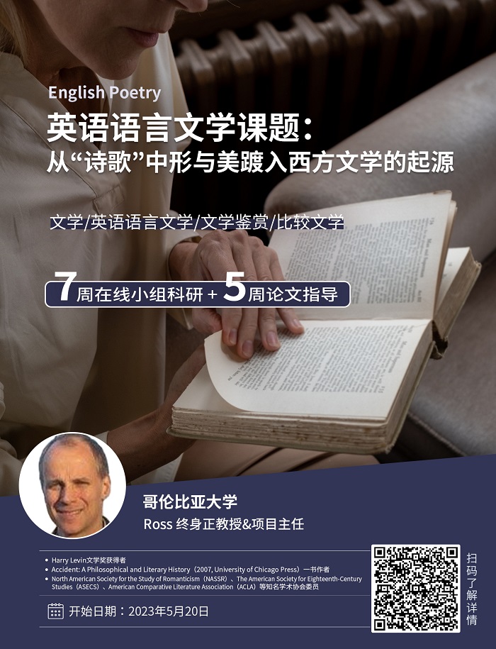 4.本項目旨在讓學生對詩歌的歷史和形式有著更清楚的理解和認識。項目中導師將結合西方詩歌作品與理論知識,帶領學生學習對文學和詩歌藝術的分析和學術研究方法。在項目結束時,提交項目報告,進行成果展示。