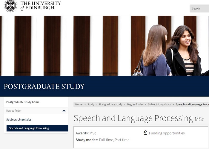1.Speech and Language Processing是愛丁堡大學的王牌專業,世界頂尖水平。該課程結合了語言學、人工智能、計算機科學和工程學的元素,由語言學和英語語言、語音技術研究中心和信息學學院的主要研究人員教授。課程學得語音合成,語音識別,自然語言處理,對話,語言生成和機器翻譯方面的最新技術以及這些技術背后的理論,并獲得這些技術系統的實踐經驗,為博士或從事行業工作的理想準備。