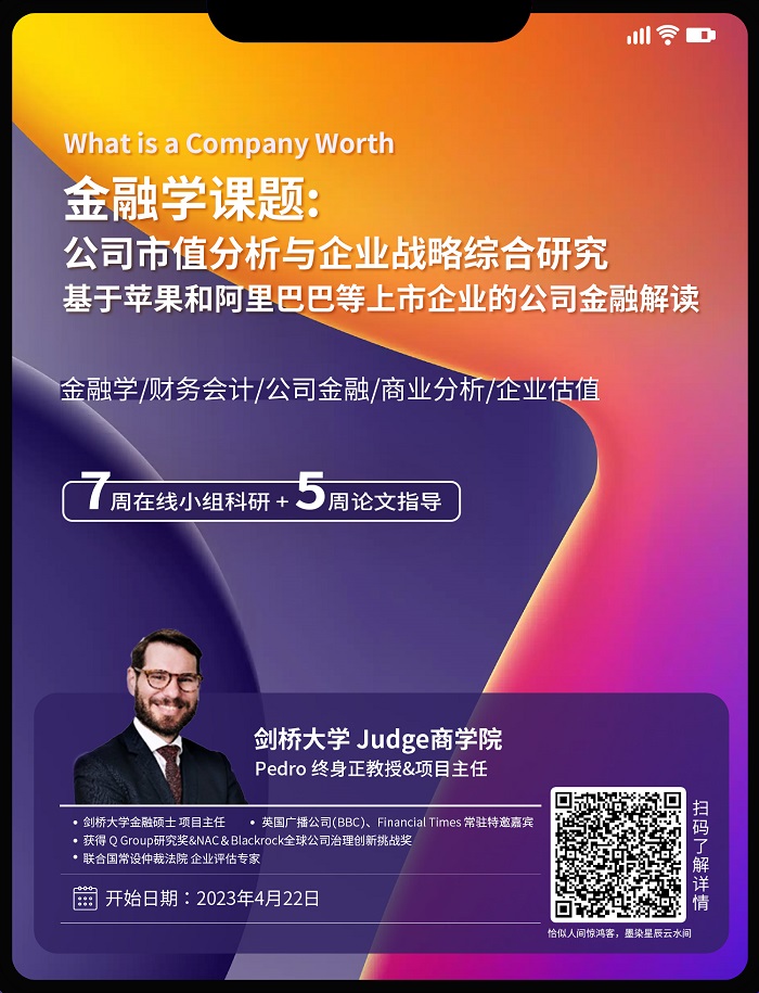 2.本項目導師目前任教于英國劍橋大學Judge商學院,同時也是劍橋大學金融碩士的項目主任。他曾為劍橋大學等多所知名大學的MBA,EMBA,MPhil等專業教授課程。