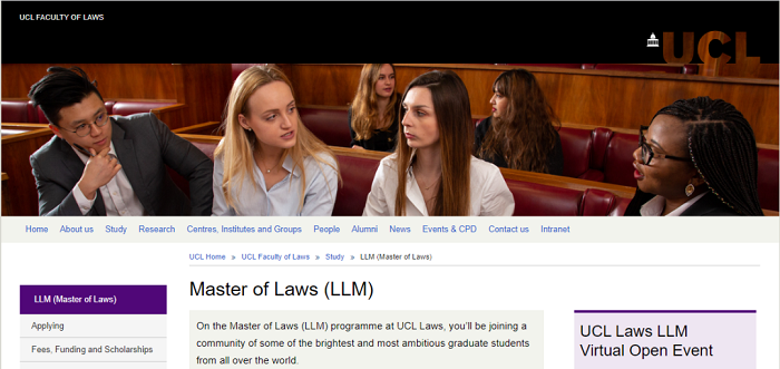 1.倫敦大學學院法學碩士課程的申請人需要英國2.1學位和一等能力的證據,或同等海外學歷,并且具備推理分析能力以及良好的溝通技巧。