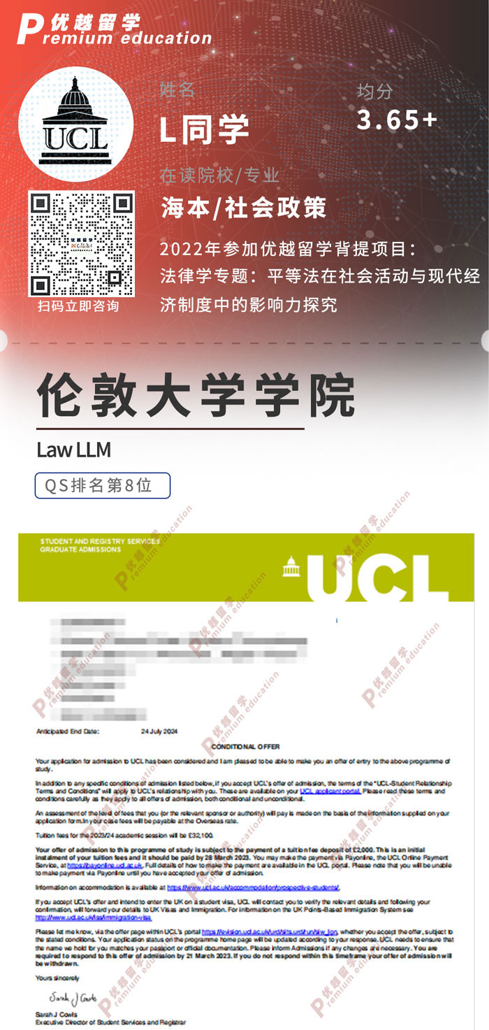 2023offer來襲!恭喜L同學在碩士留學申請中斬獲倫敦大學學LLM碩士通知書!