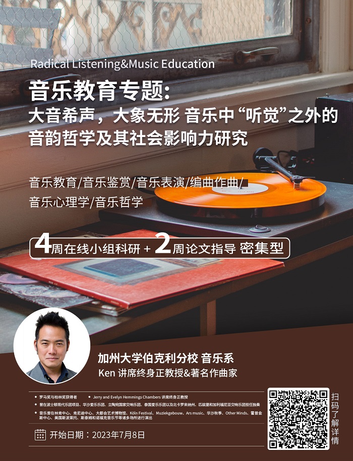 2.本項目的關鍵詞為:激進地聆聽。導師將帶領學生在音樂中游蕩,突破音樂本身的限制,通過音樂之外的認識論(教育、文化、記憶、身份、性別等相關的美學和哲學)的視角來重新考量音樂,思考音樂對于人的教育意義與人格塑造的貢獻。學生將通過這些思索來加強對音樂的理解,分析音樂是如何培養和闡明個人的情感。