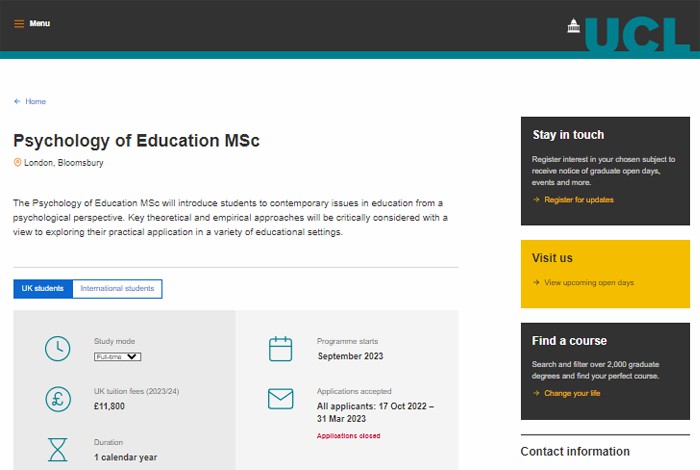 錄取專業:Psychology of Education MSc