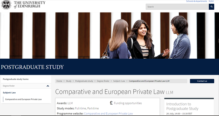 該課程旨在為學生提供公認的歐洲私法碩士學位培訓。學生將接受高級法律培訓,使學生能夠使用比較分析工具識別和解釋與私法相關的問題。除了提供法律研究培訓外,學生還將了解現代比較法面臨的主要挑戰,包括歐洲協調問題。如果學生愿意,該課程還將使學生能夠繼續攻讀博士學位。