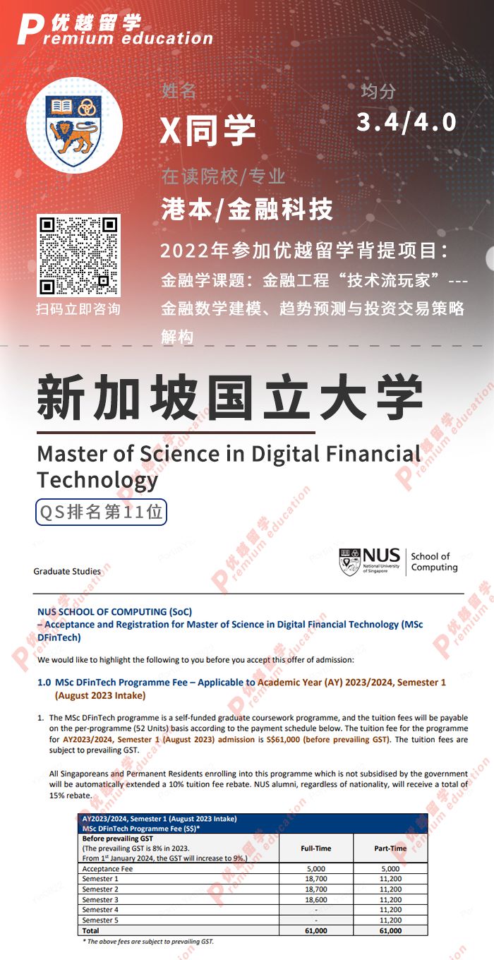 2023offer來襲!恭喜H同學在碩士留學申請中斬獲新加坡國立大學數字金融技術理學碩士通知書!