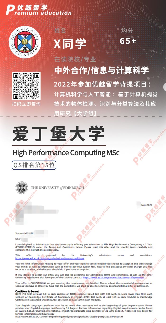 2023offer來襲!恭喜Y同學在碩士留學申請中斬獲愛丁堡大學設計信息學碩士通知書!