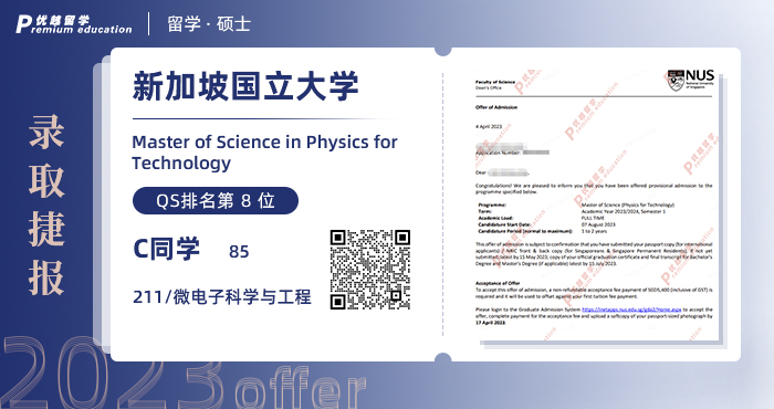 2023offer來襲!恭喜L同學在碩士留學申請中斬獲新加坡國立大學科技物理學碩士通知書!