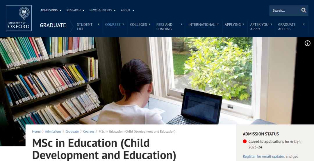 牛津大學的兒童發展與教育碩士專業旨在促進學生對兒童發展的理論及研究的批判性理解,以及它們在不同背景下與教育計劃和政策的設計和評估的相關性。也在一定程度上促進對全球性兒童發展科學當前挑戰的批判性理解。這是一個全日制的,為期一年的碩士課程。學生將參加講座,研討會和講習班,還將完成實地工作或為個人的碩士論文進行二次數據分析,論文的主題將在與主管導師的討論中提出并確定??傊?,該課程將為學生提供機會,來加深對兒童發展理論的理解及其與兒童教育和福祉決策的相關性。