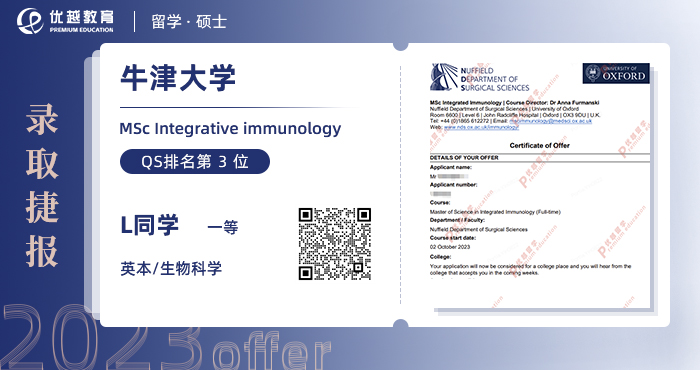 2023offer來襲!恭喜L同學在碩士留學申請中斬獲牛津大學兒童發展與教育碩士通知書!