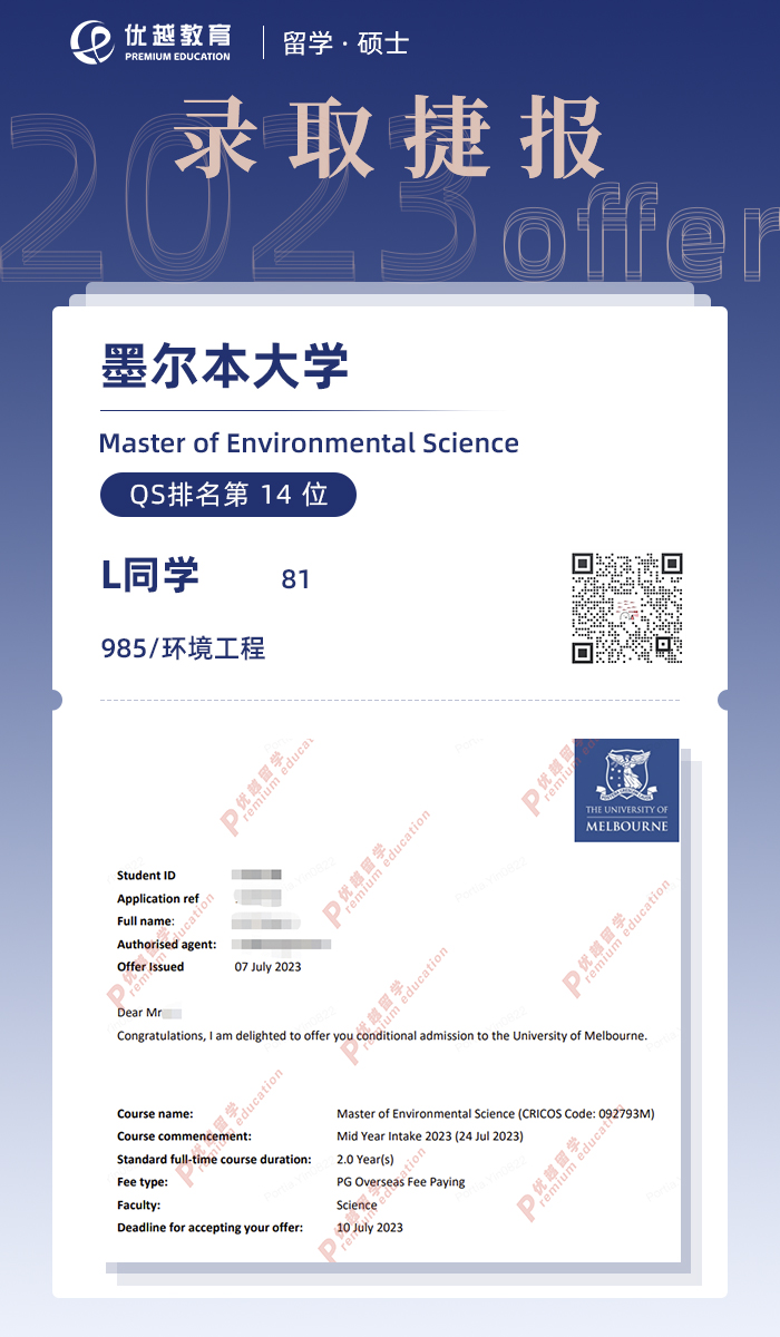 2023offer來襲!恭喜L同學在碩士留學申請中斬獲墨爾本大學環境科學碩士通知書!
