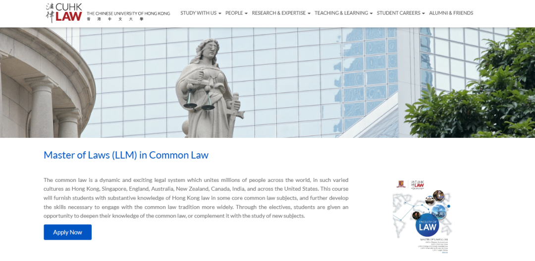 該專業的申請人需要擁有公認大學的法律專業學士學位;學校也接受非法律學科的學士學位,但需要豐富的法律相關工作經驗;同時學校說明了歡迎在貿易、會計、公共管理、社會工作和類似相關領域工作的人提出申請。