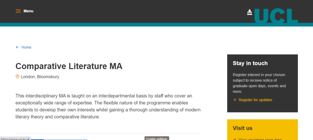 憑借獨特的現代和古代語言和文化,倫敦大學學院利用藝術與人文學院、社會與歷史科學學院、教育學院、斯拉夫學院專家的集體專業知識,為比較文學研究提供了一個全面的環境。