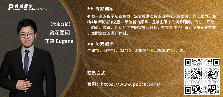 本案例的留學顧問是優越北京團隊的Eugene老師,連續4年蟬聯優越“咨詢之星”、最佳咨詢顧問。是北京同學們心中的滿分顧問。Eugene老師擅長英港澳新名校申請,英國G5大學offer斬獲70+,港前三40+,新加坡28+。通過結合學生背景和目標,推薦最合適的申請院校及專業方案給大家。