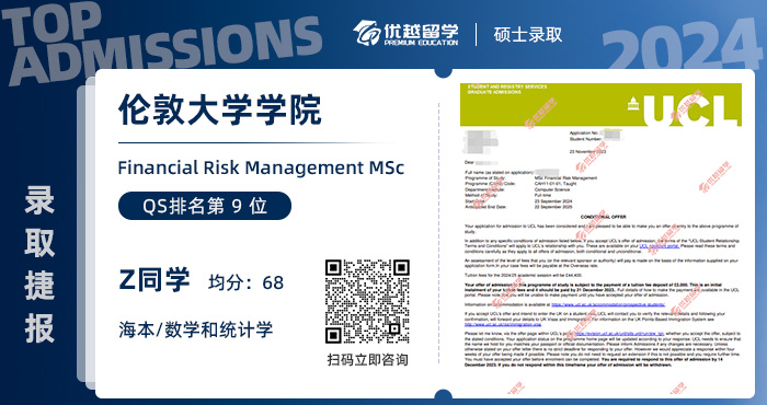 2024重磅offer來襲!恭喜Z同學在碩士留學申請中斬獲倫敦大學學院UCL金融風險管理碩士錄??!