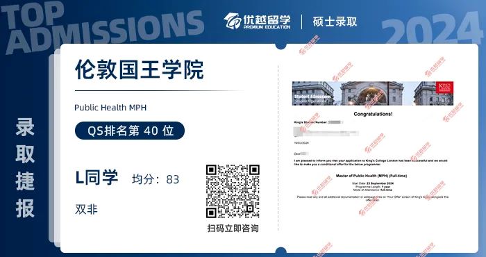 以上是【【倫敦國王學院】聽說你也在等KCL發offer?新一輪offer接收中!】相關的全部內容,查看更多【offer榜單】、【名校案例】相關資訊可前往【優越留學】首頁!世界名校申請,找優越留學!選校定校、申請規劃、文書寫作、背景提升、方案定制一套搞定!點擊【在線咨詢】,優越留學顧問24h在線為您一對一解答!
