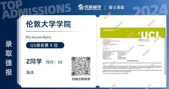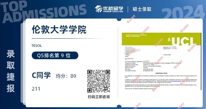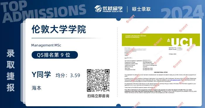 以上是【【倫敦大學學院】offer又雙叒來啦,UCL還沒招夠? 】相關的全部內容,查看更多【offer榜單】、【名校案例】相關資訊可前往【優越留學】首頁!世界名校申請,找優越留學!選校定校、申請規劃、文書寫作、背景提升、方案定制一套搞定!點擊【在線咨詢】,優越留學顧問24h在線為您一對一解答!