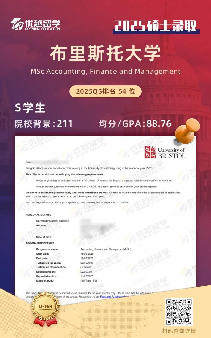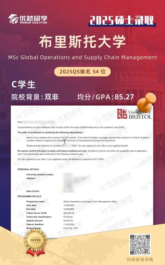 每逢英國留學申請季,布里斯托大學都是最早發offer的那批。今年也不例外,優越君一天連收4封布大offer,跟大家分享一下部分情況吧!