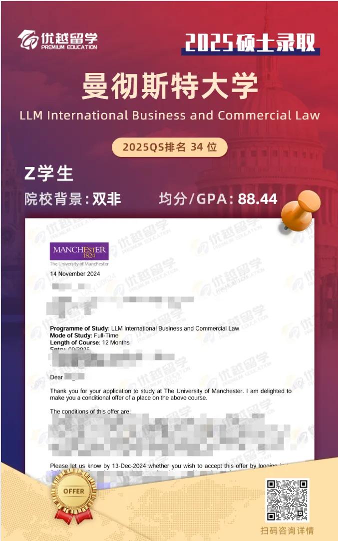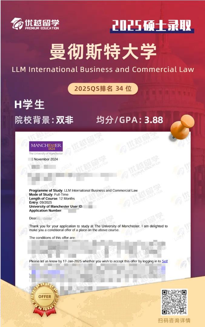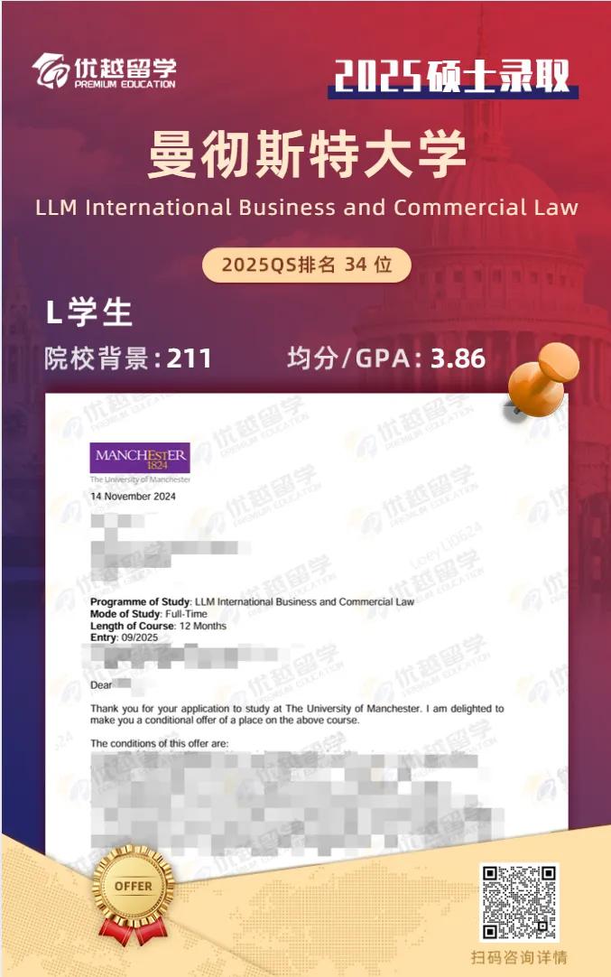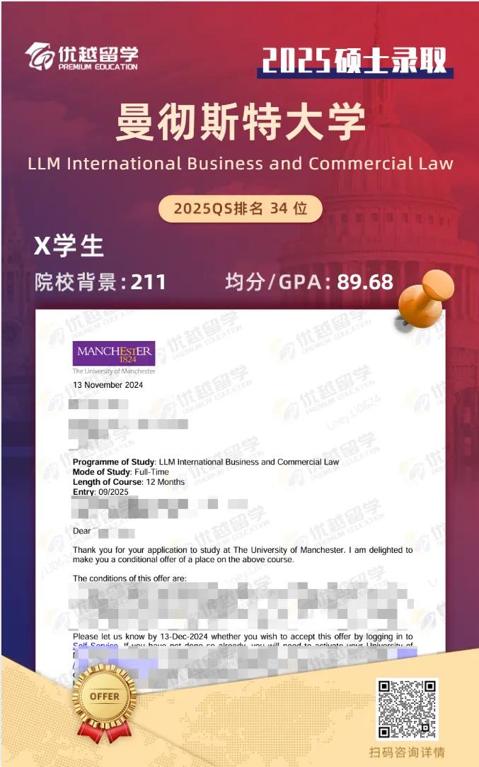 以上是【【曼徹斯特大學】遞交3天秒下offer?一大波offer雨來襲!】相關的全部內容,查看更多【offer榜單】、【名校案例】相關資訊可前往【優越留學】首頁!世界名校申請,找優越留學!選校定校、申請規劃、文書寫作、背景提升、方案定制一套搞定!點擊【在線咨詢】,優越留學顧問24h在線為您一對一解答!