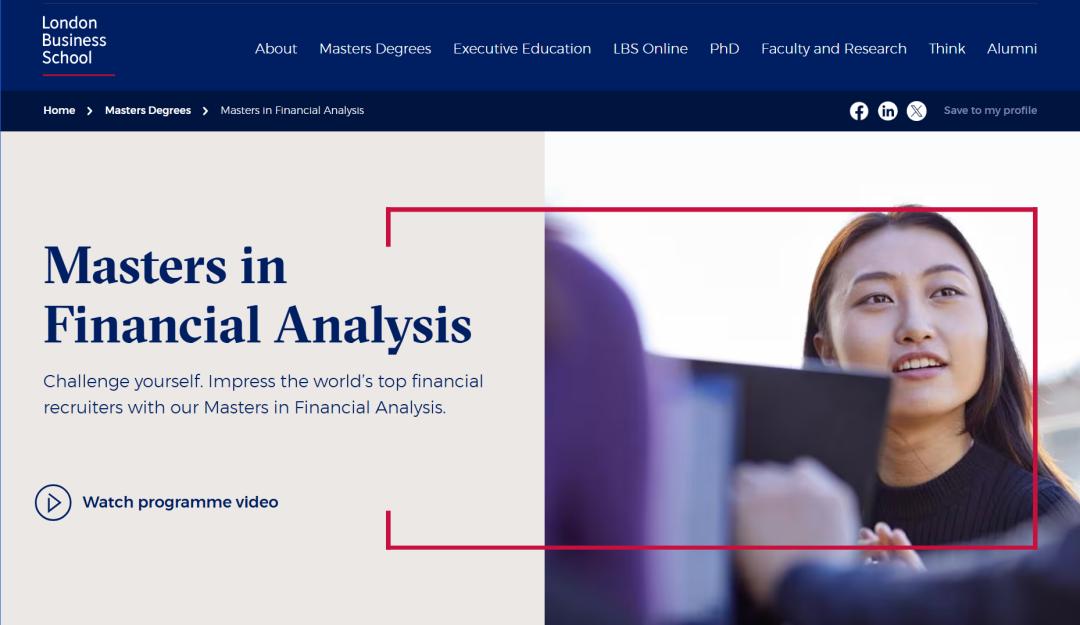 LBS倫敦商學院 的金融分析碩士 (MFA) 為您提供最先進的金融工具、金融市場和全球商業理解的堅如磐石的基礎。MFA 平衡理論與實踐和現實世界的商業接觸,為您提供與國際機構和從業者聯系并建立國際網絡的機會。