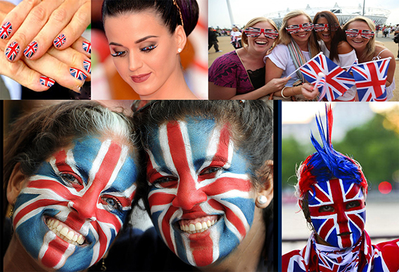 如果說英國的文藝青年們有紅白藍三色的著裝偏好,那么真正將英國國旗作為時尚元素推而廣之、傳向世界的則是廣大的英國人民。只有奧運會才會見到如此多的國旗,英國倫敦奧運會見證了英國國旗的流行潛力。英國人民更是無所不用其極地將英國國旗放在任何地方,倫敦奧運會簡直就是一場英國全民總動員的國旗創意大賽。