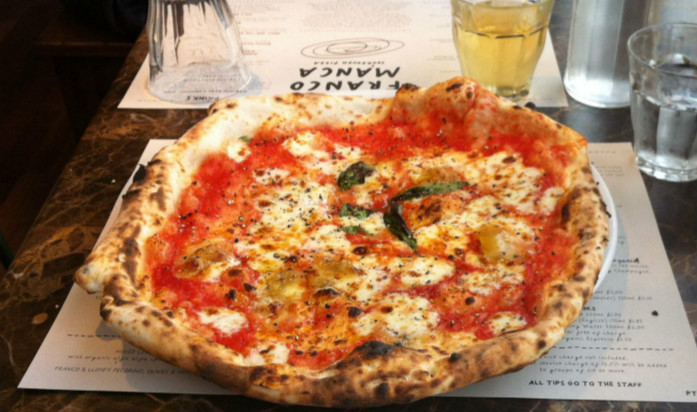 在倫敦呆久了就會知道,想吃好吃的pizza就要去Franco Manca家買,現在他家在倫敦已經開了18家店了,就算是那款最便宜的的披薩(僅需4.50磅就可以買到),它的味道也是很讓人感動的。而且在加3.50磅,就可以根據個人口味要一杯餐廳自制的紅葡萄酒、白葡萄酒或粉紅色葡萄酒。