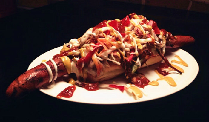 這家店的主打熱狗和漢堡,菜單上的名字都很詼諧,讀完往后本來不知道啥意思,要仔細看每道菜里畢竟有啥主料和配料才華知道自個點啥,比如他家的招牌 熱狗叫Widowmaker 是一個巨型24英寸長的用純牛肉做成的熱狗再加上鋪滿了各種輔料和奶酪,切實本來讓人口水直流。