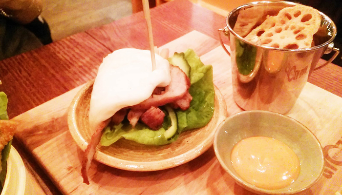 如果你一個人來吃飯,想多嘗幾種食物,可以選擇Gyoza Bar的幾款套餐,主廚推薦的這份Signature Bao Board就可以說是把店中的“精髓”都包含在內:三個雞肉煎餃,兩個日式炸雞翅,小碗豚骨拉面和蔬菜天婦羅包。蔬菜天婦羅包有點像北方的“夾饃”,蒸面餅很香,熱熱的,蓬松有空氣感,咬下去滿咀嚼面的香甜就慢慢溢出來。蔬菜天婦羅,配著生菜,再混合美乃滋和照燒醬,吃起來很有層次感,也很特別,有點美式和日式混合的感覺,是小編的最愛。