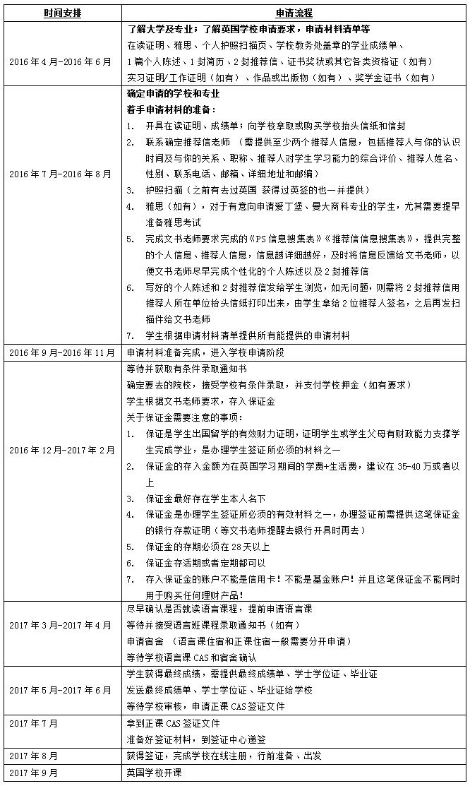 英國院校大部分學校都是“rolling admission”制,滾動錄取,先到先得,錄滿即止,不管多優秀,申請晚了就只能吃閉門羹了。所以英國留學,越早準備,越早申請,成功的幾率就越大,尤其是對于想申請名校的學生更是如此。以下是比較理想的申校時間規劃,供大家參考: