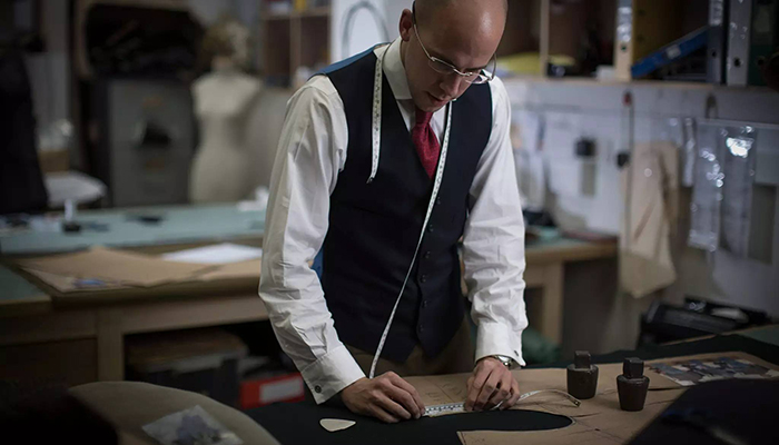 之所以能有這么好的服裝工藝,是因為薩維爾街一直本著顧客至上的理念在做衣服。如果想在這里學習做衣服,一個學徒要至少潛心學習5年以上,光學習做褲子都要3年。學徒生活是非常艱苦的,底薪非常微薄,通常做的都是熨衣服、裁剪布料等打雜的活兒。這里的裁縫相信,只有這樣艱苦生活才能磨礪出真正的服裝工藝。