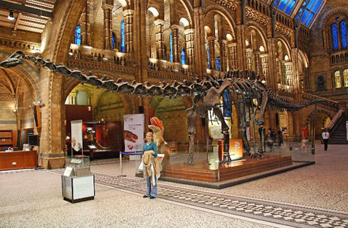 自然歷史博物館(The Natural History Museum )是由文化部門和體育部門所資助的非政府部門的公共機構。它除了華麗的建筑之外,最廣為人知的收藏就是恐龍的骨骼,尤其是博物館大廳那座規模龐大的梁龍模型非常有名。