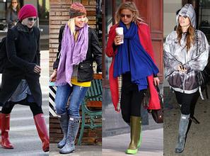 雨雪天出門換雙鞋是必要的,如果心愛的平底鞋、運動鞋和高跟鞋被水泡壞就該心疼了。在英國,高幫雨鞋搭配大衣或無幫雨鞋搭配九分褲都是流行的風格,留學英國的女生們這么穿很顯時尚氣質。