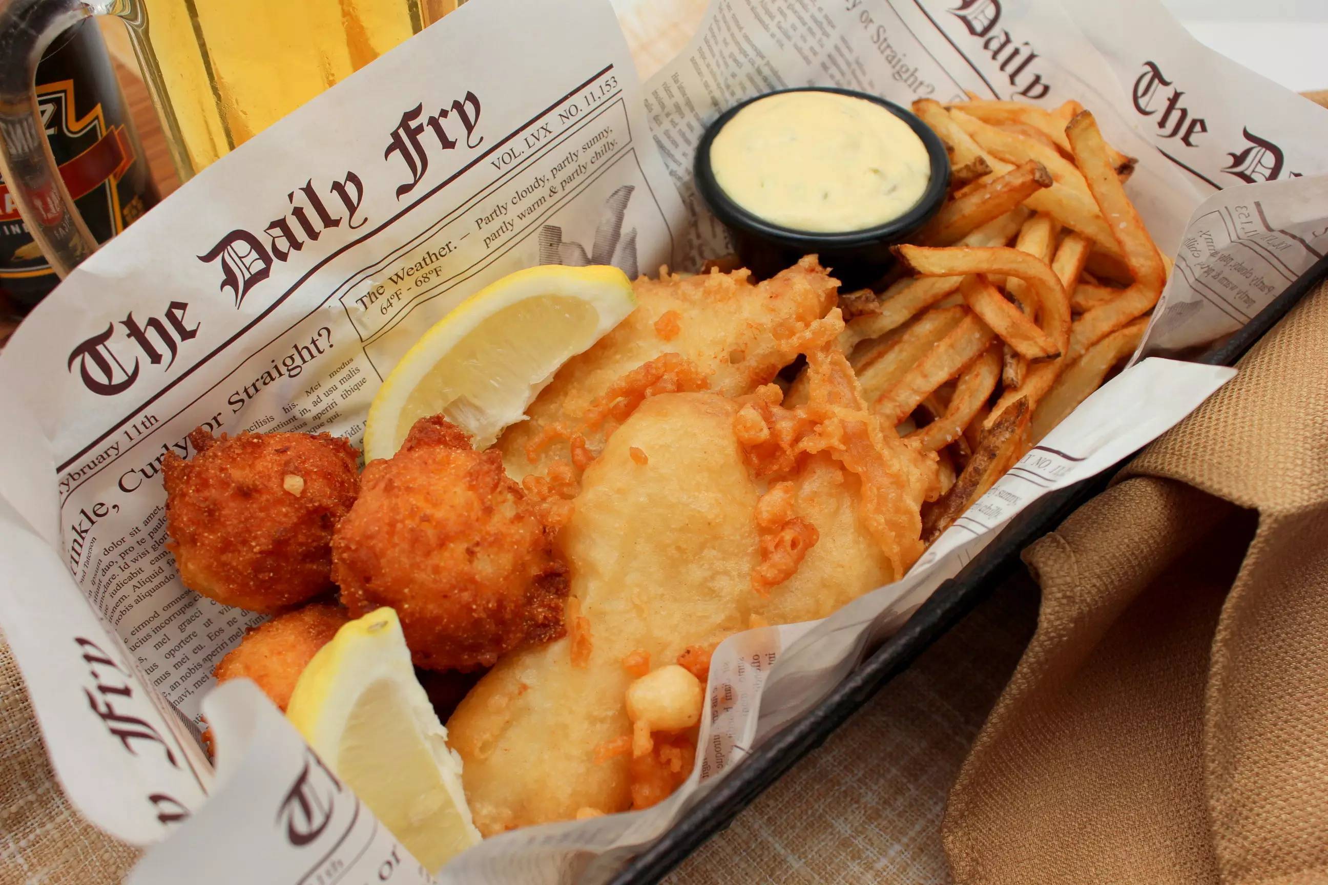 請各位小伙伴做好心理準備,英國真的沒有什么好吃的。至于國菜Fish & Chips味道如何因人而異,就是炸鱈魚配上炸薯條,搭配上各種醬料就成了英國的國菜。