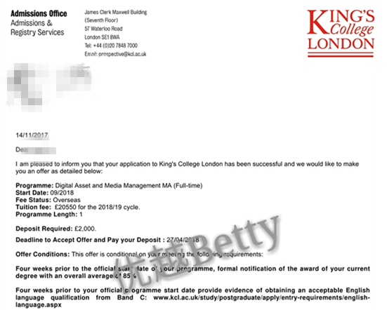 學生背景:F同學,上海政法大學,法治新聞專業,3.58,2018年6月本科畢業,申請2018年9月入學的英國研究生,無雅思申請,拿到了KCL兩個專業的offer,Digital Asset and Media Management MA 和Digital Culture and Society MA專業。