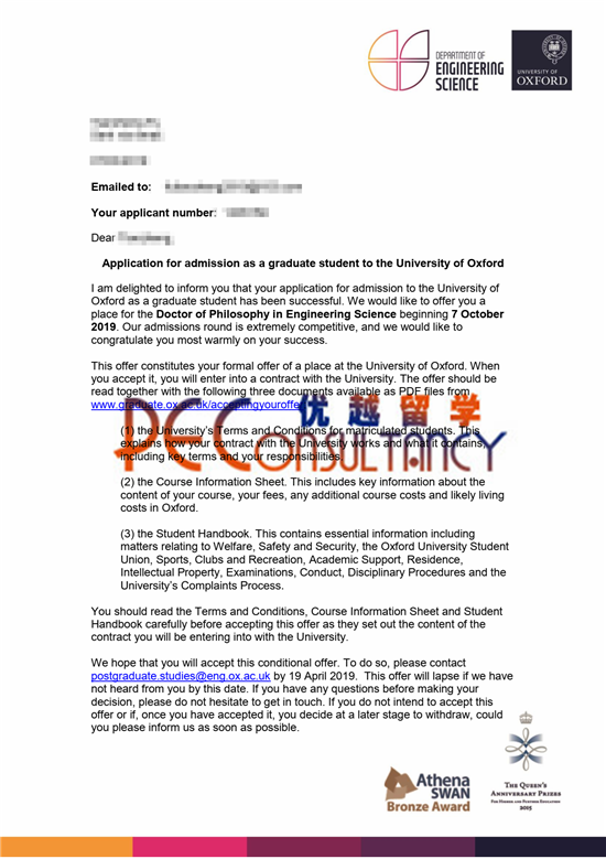 2019offer:恭喜王同學獲得牛津大學(世界排名:4)土木工程方向博士通知書