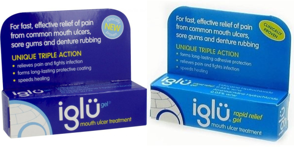 ??這種產品只有(藥店)Pharmacy有售,而且價格較貴,7鎊左右。但很多顧客感覺它很好用。它成粘稠膠狀,使用方法跟Bonjela相同,用手指或棉棒涂抹在潰瘍處。但是它比Bonjela止痛效果更長,因為它能在潰瘍處形成一層有效的保護膜,并不受唾液的影響,從而持續防止細菌的侵入,保護傷口不受損害,進而加速潰瘍的恢復。所以在飲食進餐時很有幫助,一般使用一次,能管很久,需要時候可以放心再次使用。Iglu有兩種包裝,一種普通裝,一種快速起效(Rapid relief)裝。