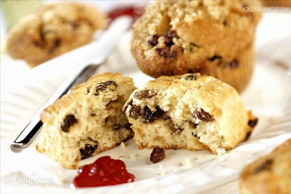 司康算是很能代表英國的一種甜點了吧?它還可以叫英國松餅、英國薄餅。司康雖然長得其貌不揚,很像一塊普通的小餅,但是味道還是相當好的??!司康可是英式下午茶里必不可少的一種東西,女王也每天都要吃的呢!