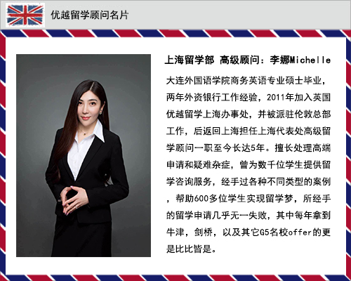 首先要明確的是英國碩士申請都需要提供什么: 1,大學前三年的完整成績單(已經畢業的學生提供四年的), 2,在讀證明(已經畢業的學生提供畢業證和學位證), 3,雅思(英國大部分學校都可以接受先申請,后補雅思); 4,G5名校的商學院申請提供Gmat; 5,申請文書(通常情況下包括個人陳述,推薦信和個人簡歷); 這就是所有的碩士申請必要材料,看起來要求的很簡單,并不復雜。那么什么是英國大學看重的呢,永遠是學生的學術背景,即院校背景加學生的成績,也就是平均分;這兩項加起來可以說是占申請成功與否的80%了,雖然這種硬件條件所占的比例非常高,但是令人無奈的是這對于大多數大三結束的學生而言這已經成為無法更改的事實了,那么怎么樣在學術背景無法改變的情況下,增加申請的競爭力和成功率,從眾多的申請者中脫穎而出,最終拿到心儀大學的錄取通知書呢,唯有靠文書包裝和背景提升了。想要把學生包裝的恰到好處,首先要弄清楚英國大學在招生的時候看中學生的哪些特質,然后才能投其所好的對學生進行包裝。著名的英國G5大學之一帝國理工學院在回復我們發給學校的詢問學生為何被拒的回復郵件中說,他們的招生辦在選拔申請者時主要考慮以下幾個因素:依次是學術背景;職業資質(此處指的是全職的工作經歷);未來的職業規劃;以及你讀好這個專業的決心和對于所申請專業的忠誠度;顯而易見,這幾點就是我們在給學生做文書包裝的時候所需要重點突出的地方。 2018年入學的申請還沒有開放,但是從2017年入讀學生的申請情況來看英國碩士申請的難度在明顯的逐年提高,這不單單體現在對學生的院校背景要求越來越高,對學生的錄取分數線要求越來越高,而且對文書的要求也更是顯著提高。隨便糊弄寫寫的文書不再有可能成功的申請到到像G5,以及華威,國王這樣的名校了,今年在我們這里做申請的學生有不少反饋過來說身邊有成績很好的同學因為自己DIY申請沒有經驗,而與名校失之交臂,最后拿著高分,卻只能入讀二流的大學,而自己明明成績不如同學卻因為找到了我們順利拿到了名校的offer,在他們慶幸自己當初作出了正確選擇的同時,我們也深表安慰,在此希望我們優越教育的顧問和文案老師用我們英國留學數年來所積累下來的豐富經驗和專業度,可以幫助更多的對自己有要求的學生拿到心儀大學的錄取通知書,幫助他們實現夢想。