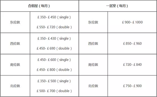 自己租房如果找到價格合適的,則可以省去很多費用。下圖的價格可以作參考: