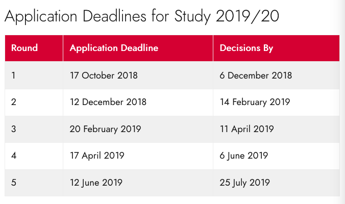 1、截止日期:愛丁堡大學2019年秋季課程申請共分為五輪,具體申請開放、截止日期如下。