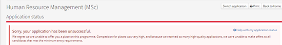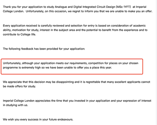 而且拒信原因通常都是競爭激烈的“模版拒”,并不是“院校不在list”、“均分沒有達到要求”,或者是“專業背景不符”這些由于硬性條件不足而被拒信。