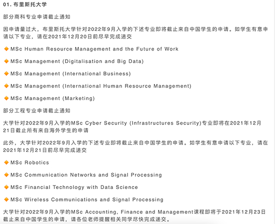 愛大1月7日前部分專業關閉,還有幾所大學在11月就已經停止了第一輪審理。