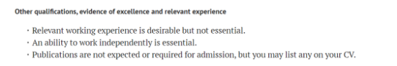 牛津大學:基本所有專業都會提到如果申請者有工作經驗,論文發表等,均可以提供。