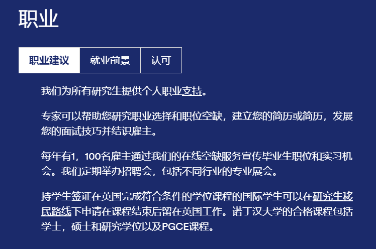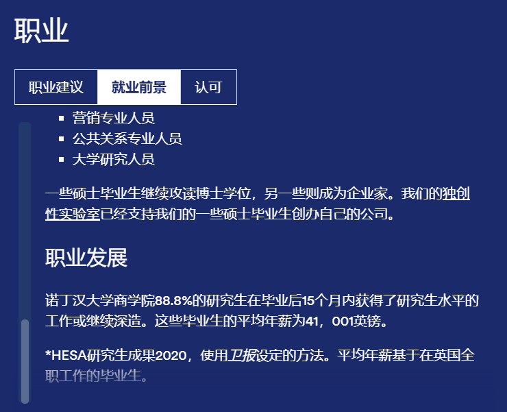 5.諾丁漢大學也給畢業生提供了完善的職業支持和大量的實習工作機會。我們專業的應屆畢業生平均年薪都達到了4W英鎊。而因為之前有行業工作經驗,再加學歷的提升,回國后工作年薪很快就邁過了50W的門檻。