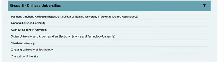 第一所院校就有意思了,可能是UCL認為它某些學科方向比較強吧,但是不得不吐槽一下,南航本校都不在Group A或者Group B,確實有點想不通。