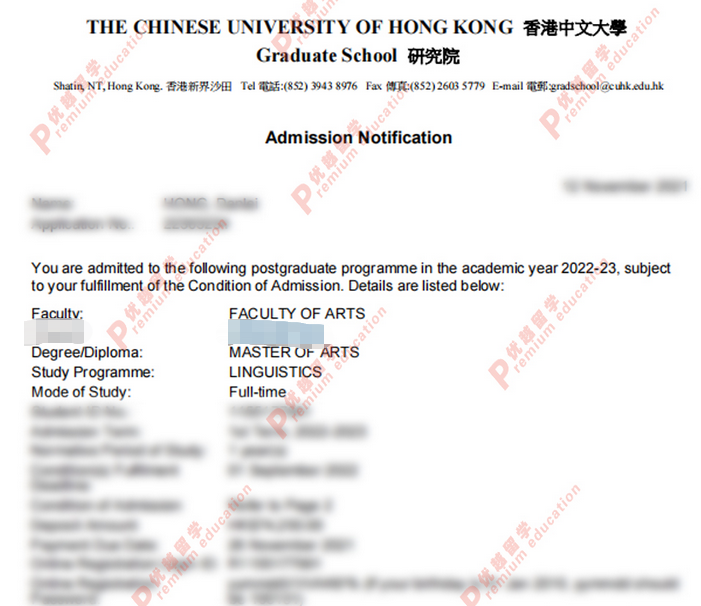 C同學的本科背景非常優秀,又有海外交換背景,交換的學校是美國優秀的密蘇里大學新聞系。傳媒類專業本身分支比較細,在課程設置上,國內認同度等多方面都有差異。C同學在咨詢時對于申請方向也不清晰,顧問老師在咨詢階段就為C同學大致理清了申請思路,在簽約后更是根據C同學的興趣和想法,給了C同學中肯的建議,幫助C同學選擇到自己想要的專業,最后獲得香港中文大學的offer。