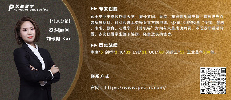 Kail老師碩士畢業于格拉斯哥大學,擅長英國、香港、澳洲等多國申請。在優越工作多年,擅長高端申請,針對不同背景的學生能給到最專業的方案指導。QS前100院校里“傳媒、金融、市場、教育、心理學、計算機等”方向有大量成功案例,不乏雙非逆襲背景。