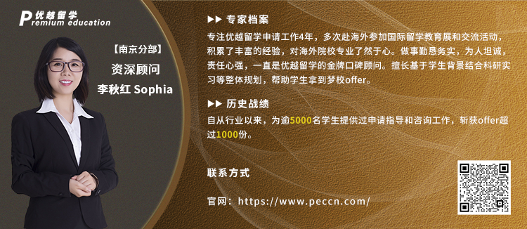 優越留學Sophia老師畢業于南京師范大學,在優越留學南京公司工作多年,已幫助眾多學生獲得英國、香港、澳洲名校錄取,其中不乏英國G5名校以及世界百強名校,逆襲案例經驗豐富。
