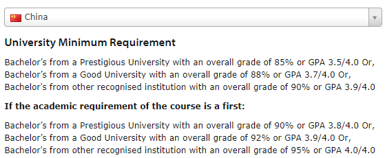 例如:北大學生申請曼大國際商務管理碩士被拒,拒信理由是We normally require a 90% GPA from Peking University(我們通常只接受本科四年GPA均分在90%以上的北大申請者)。